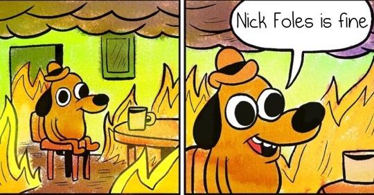 You haven’t missed much. The negativity has been overwhelming. 1.25 bad games has turned Foles from “not a problem at all” to “so bad we might as well not even show up for the game in two weeks to avoid embarrassment” amidst the black-tinted glasses crew.